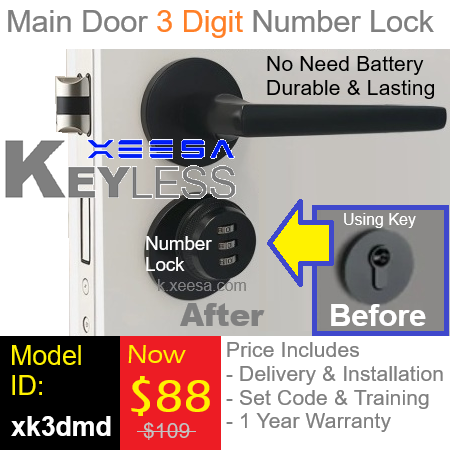 Details & SpecificationsXeesa Keyless Number Lock for HDB BTO Main Door by replacing cylinder keylock.3 digit settable number lock.